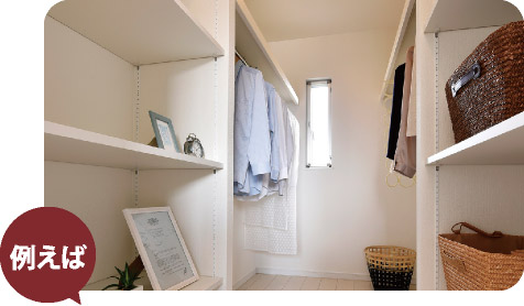 - 主寝室には、換気に優れる窓を設けた、たっぷり収納のウォークインクロゼット。
