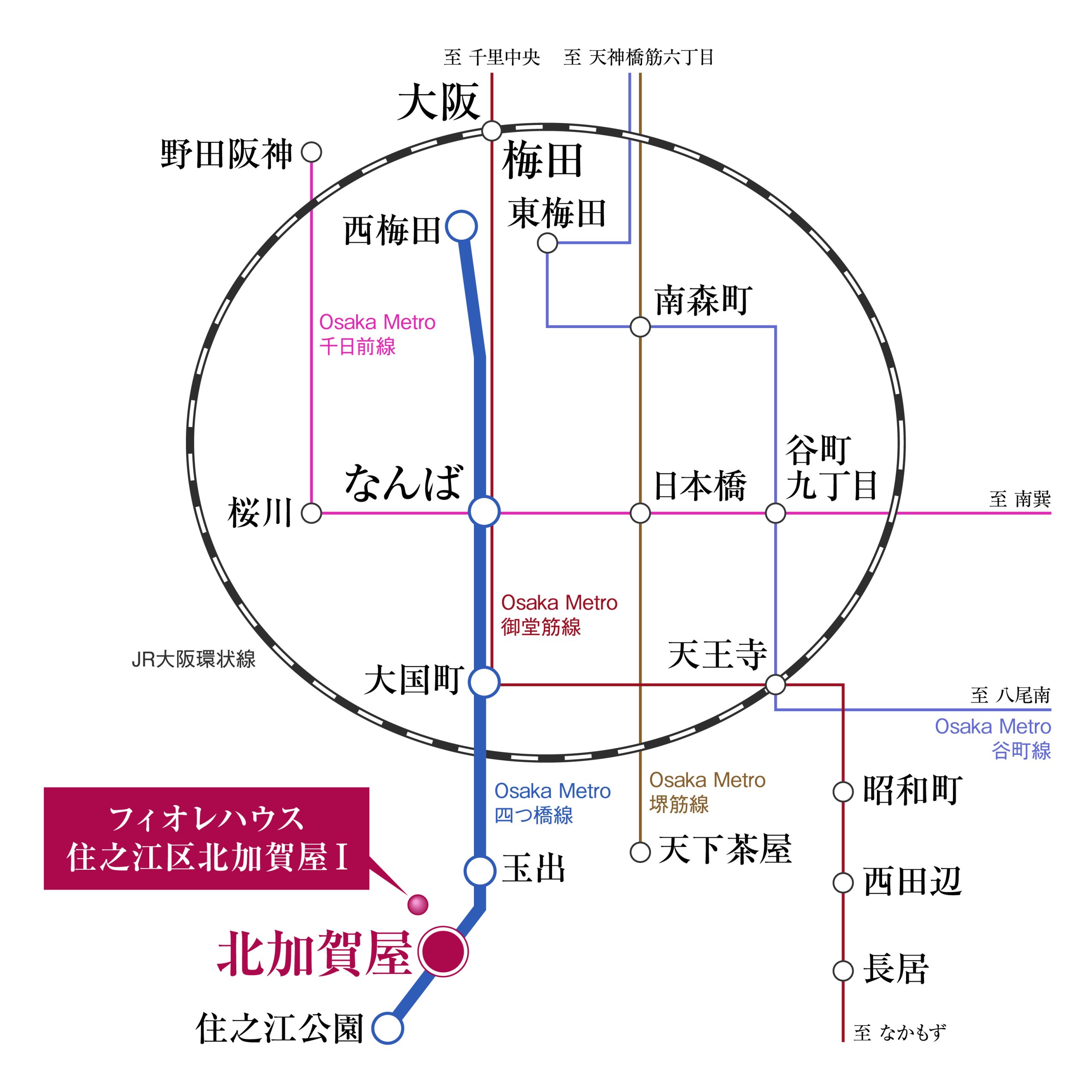 ■四つ橋線「北加賀屋」駅 徒歩5分。「なんば」約11分・「西梅田」約19分の軽快アクセス