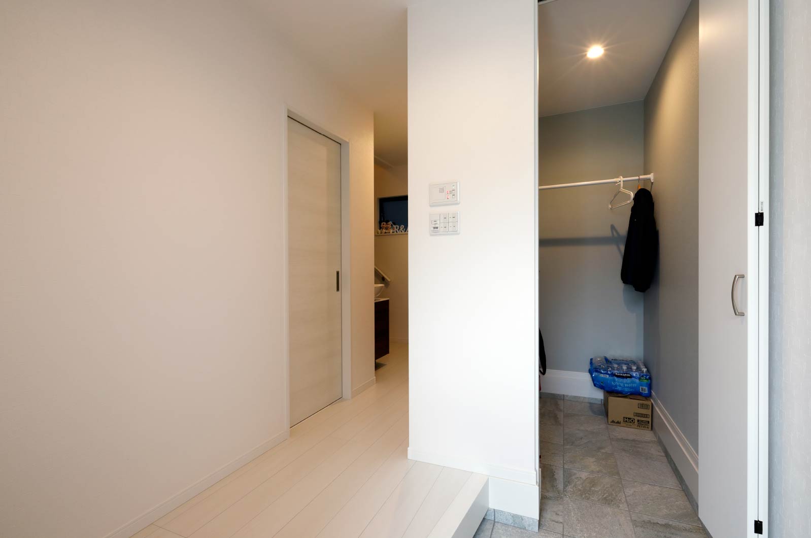 各部屋には大きめのクローゼットを、玄関スペースにはシューズインクローゼットを設けて、収納スペースを充実させました。