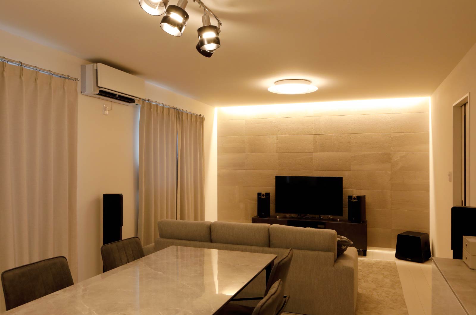 リビングもエコカラットと間接照明で雰囲気のあるおしゃれな空間になっています。