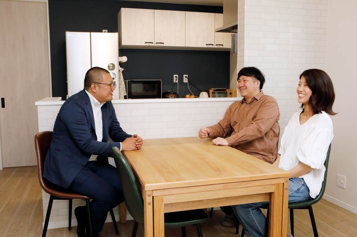- 新しく家を購入するなら、場所は、2 人の職場の中間地点にと決めていました。 三国は、そうした条件に合っていたので、ここでいいかなと思ったんです。 ちょっと奥さんの職場寄りにはなりましたけどね(笑)。 もちろん場所以外にも、どんな家に住みたいかとかコストのことなんかも考えたと思うのですが、 ここにしようという決め手になったのはやっぱり高岡さんかな。 高岡さんがとてもいい人だったということしか今は思い浮かばないですね!