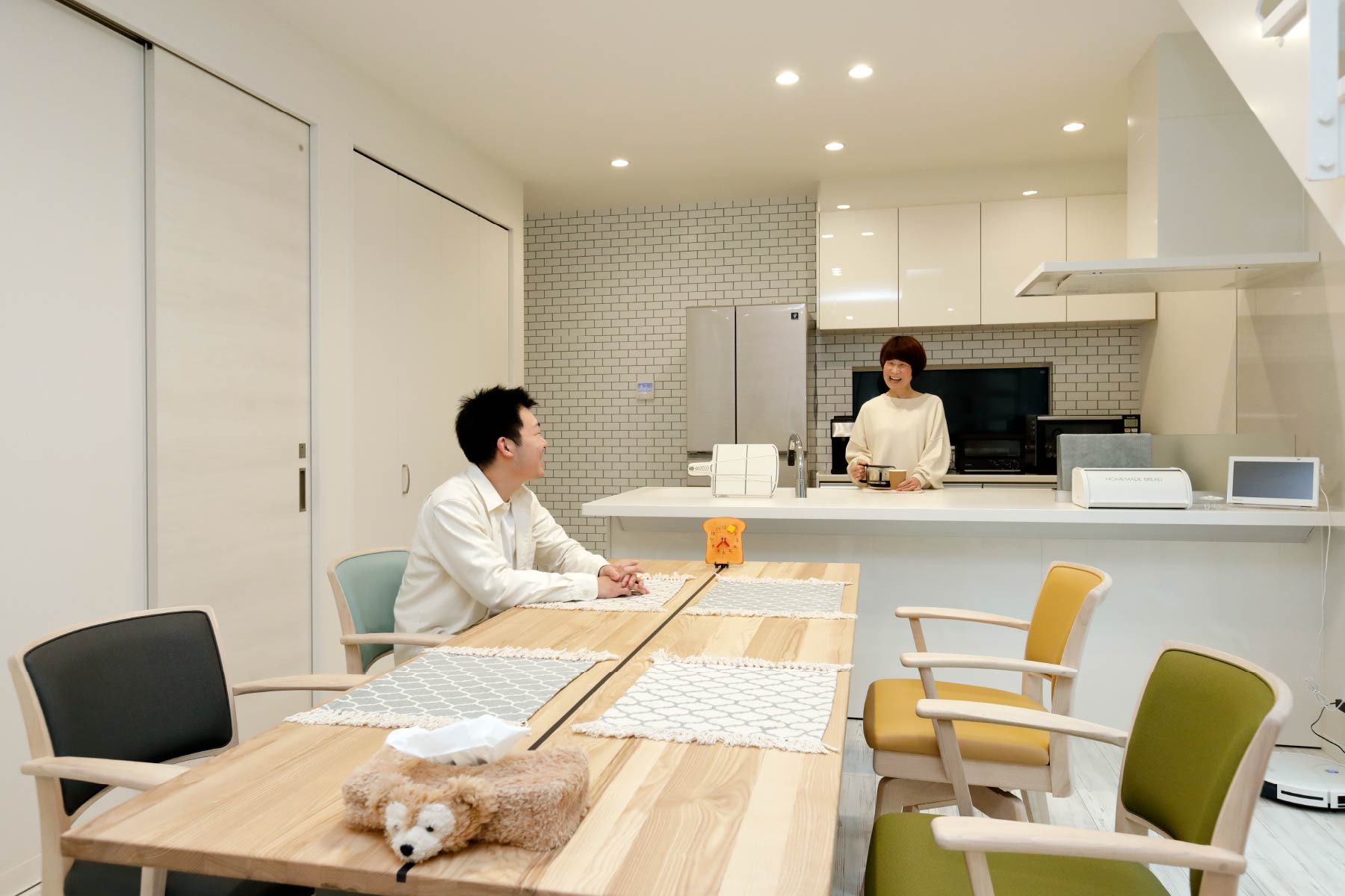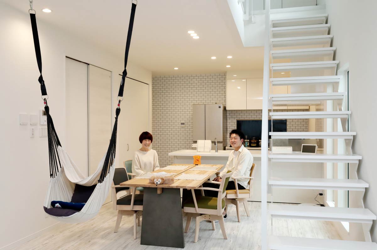 - 遊びに来てくれたお友達は「帰りたくない!」と言ってくれます。居心地が良いと言って、我が家に3回来たお友達もいるほど。以前は、家に誰かを呼ぶことには消極的だったのですが、今は「いつでもきて!」という感じです。人をお家に招待することがとっても楽しくなりました!松本さんには家づくりの最中に、「我が家が完成したら、ブルームさんのホームページの『お客様の声』に私の家を絶対に掲載してね」とお願いしていました(笑)。こうして写真撮影やインタビューしてもらえて本当にうれしく思っています。マイホーム完成のとてもいい記念になりました。どうもありがとうございました。
